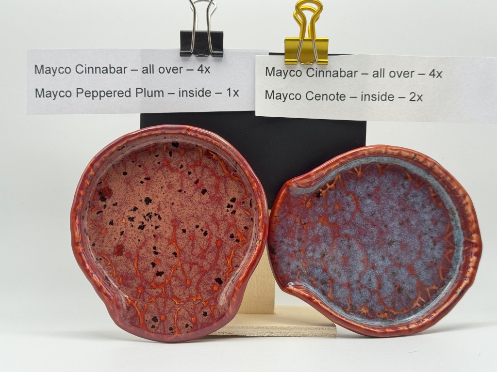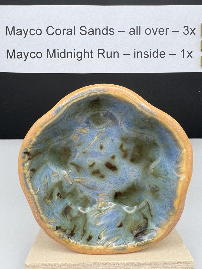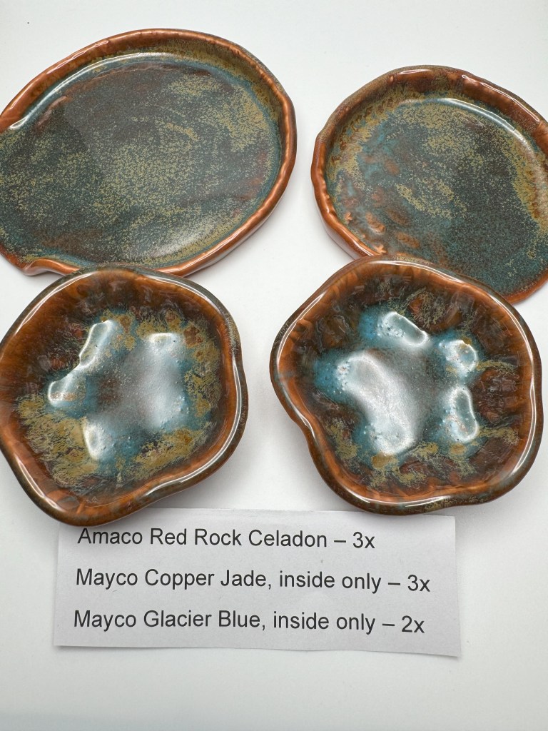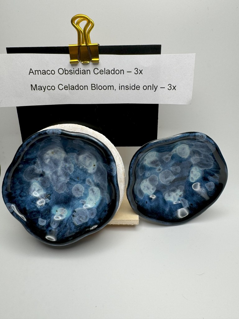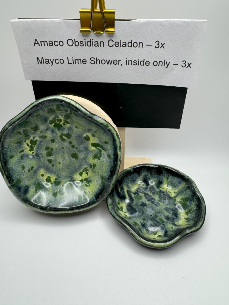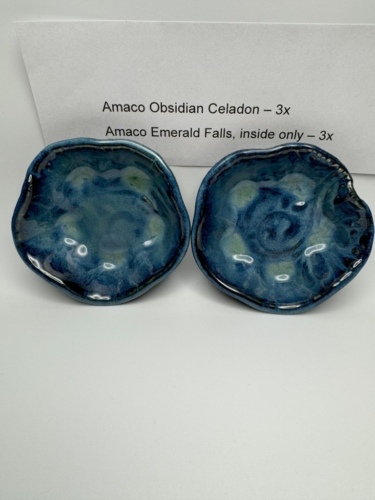 Unless noted, these glaze samples were applied to Laguna B-Mix stoneware or Aardvark Nara Porcelain – all slow fired to cone 5 with a ten minute hold. The designation of “1x, 3x, etc.” means the number of times I painted that particular glaze on my pottery (e.g., 1x means once, 3x means three times, etc). I always list the glaze I painted first, followed by others in my description. Typically, I wait until the glaze is dry before the second application. Enjoy the combos!