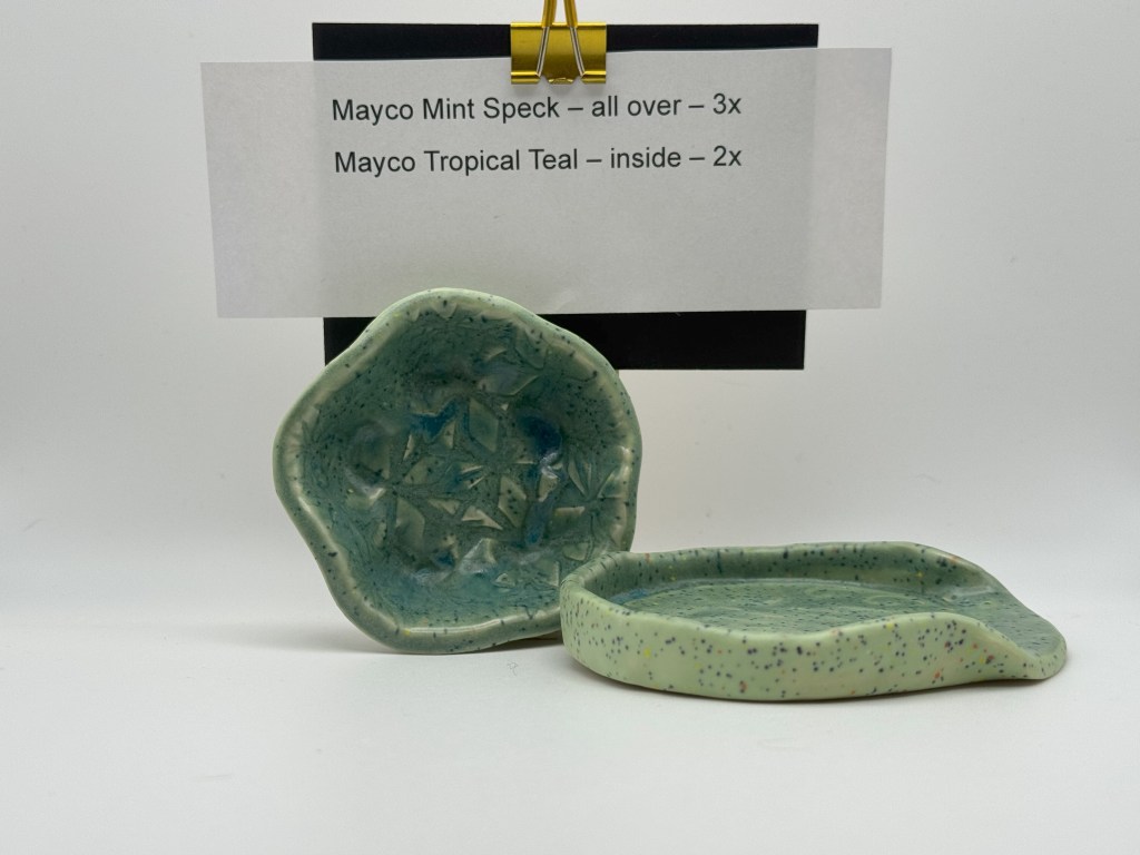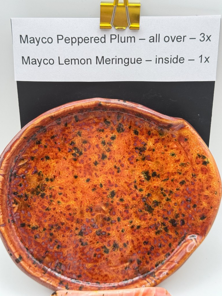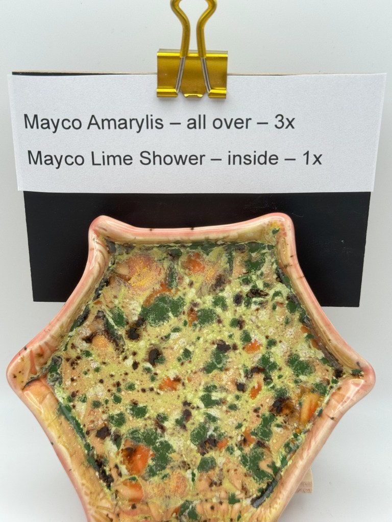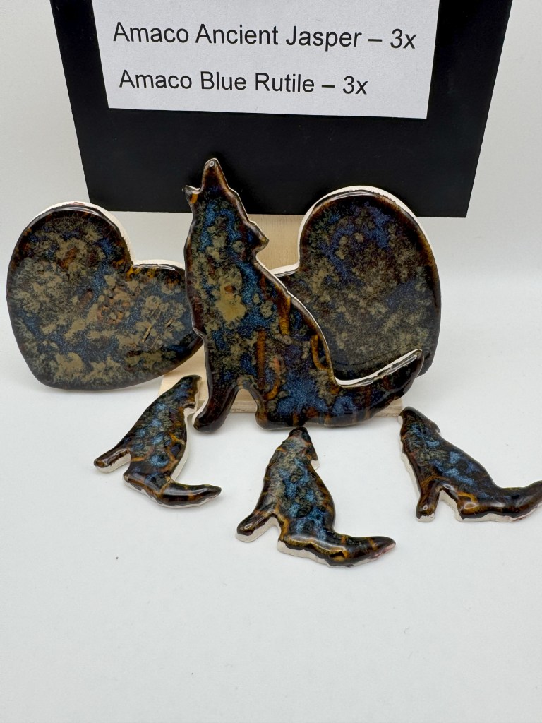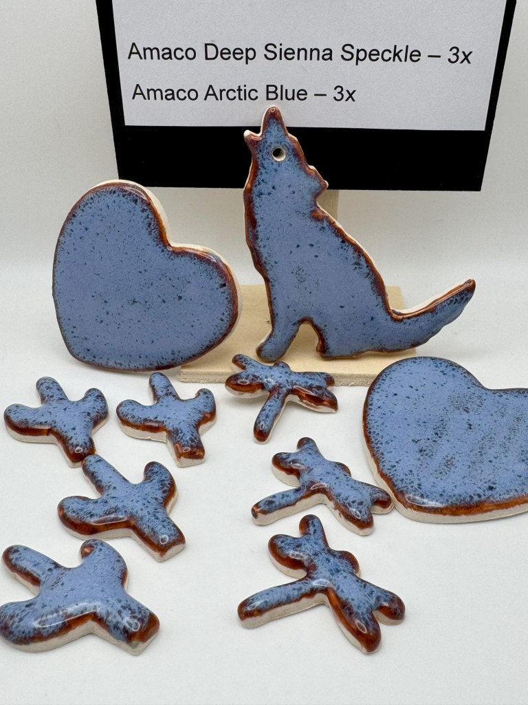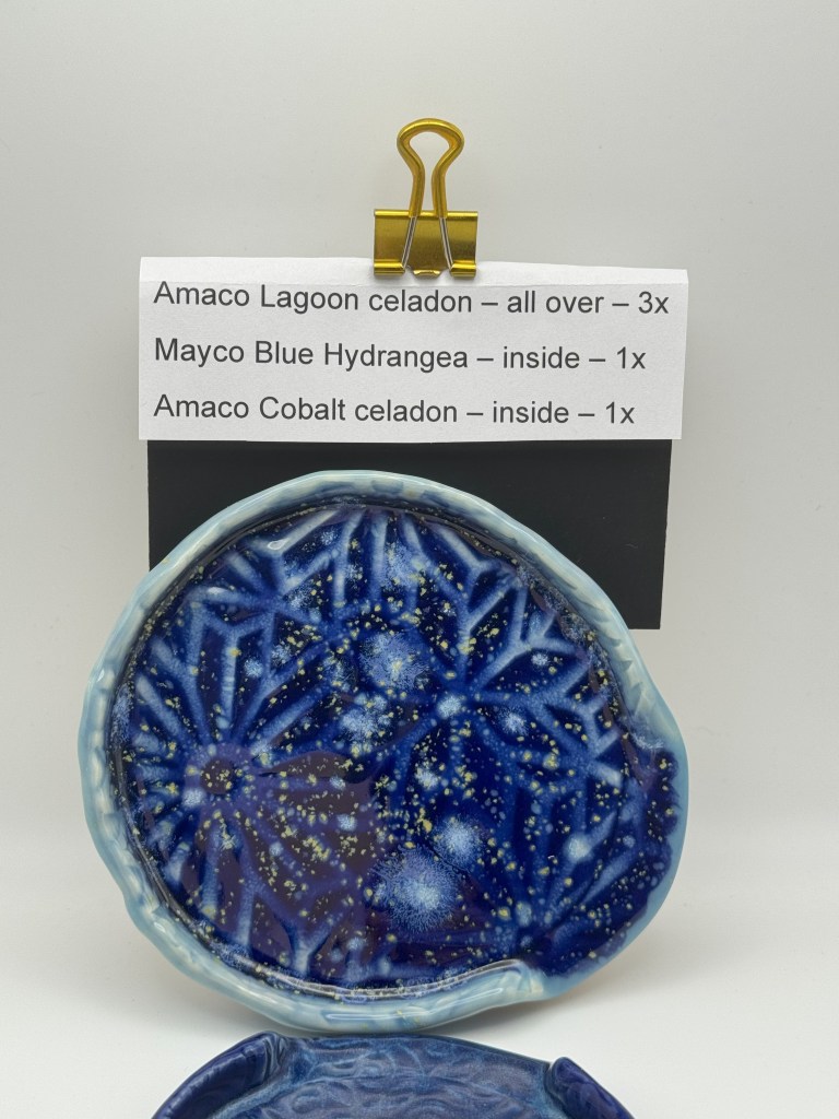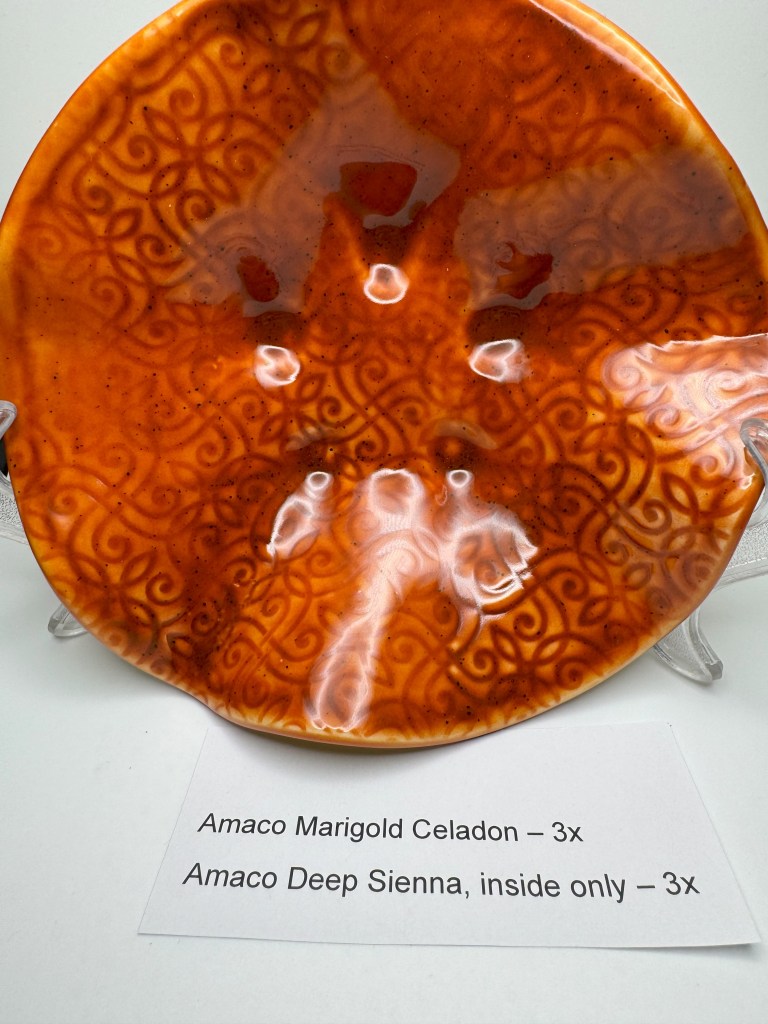 Unless noted, these glaze samples were applied to Laguna B-Mix stoneware or Aardvark Nara Porcelain – all slow fired to cone 5 with a ten minute hold. The designation of “1x, 3x, etc.” means the number of times I painted that particular glaze on my pottery (e.g., 1x means once, 3x means three times, etc). I always list the glaze I painted first, followed by others in my description. Typically, I wait until the glaze is dry before the second application. Enjoy the combos!